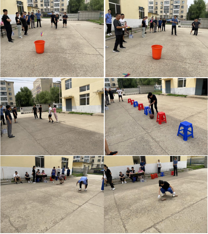 本次趣味游戏分为三组,共设置5个比赛项目。分别是:摸石头过河、趣味投毽子、同甘共苦、一圈到底、赶小猪。每一个比赛项目既可以锻炼大家动手动脑能力,又可以增强大家在工作中团结协作精神,既是智慧和体力的角逐,也是团结和协作的完美比拼,根据综合成绩最终确定各组名次。